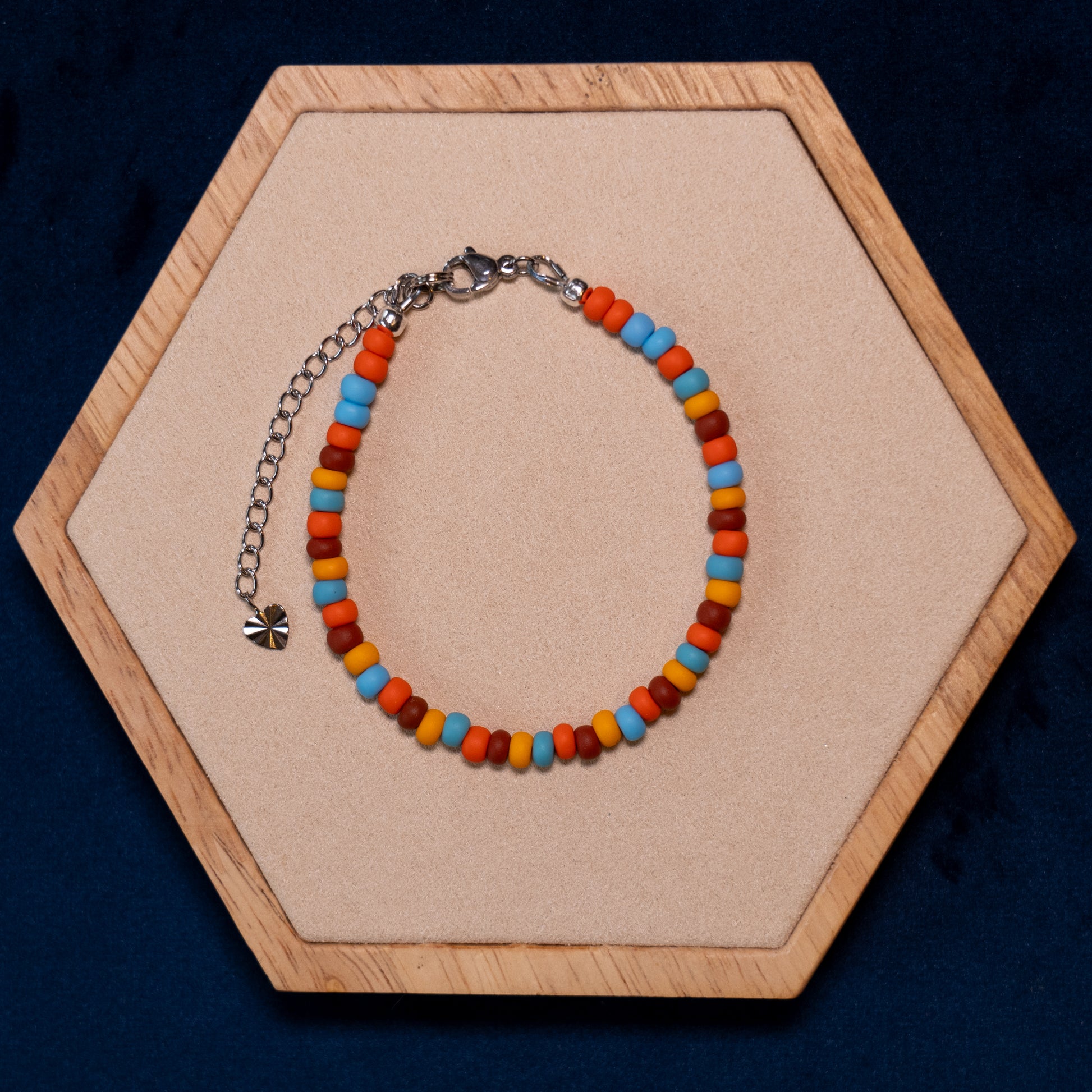 Deze armband is opgebouwd uit grote rocailles in zachte, matte tinten. Er zijn meerdere ontwerpen beschikbaar binnen dit kleurenpalet. De armband draagt licht en laat zich makkelijk combineren met andere sieraden.