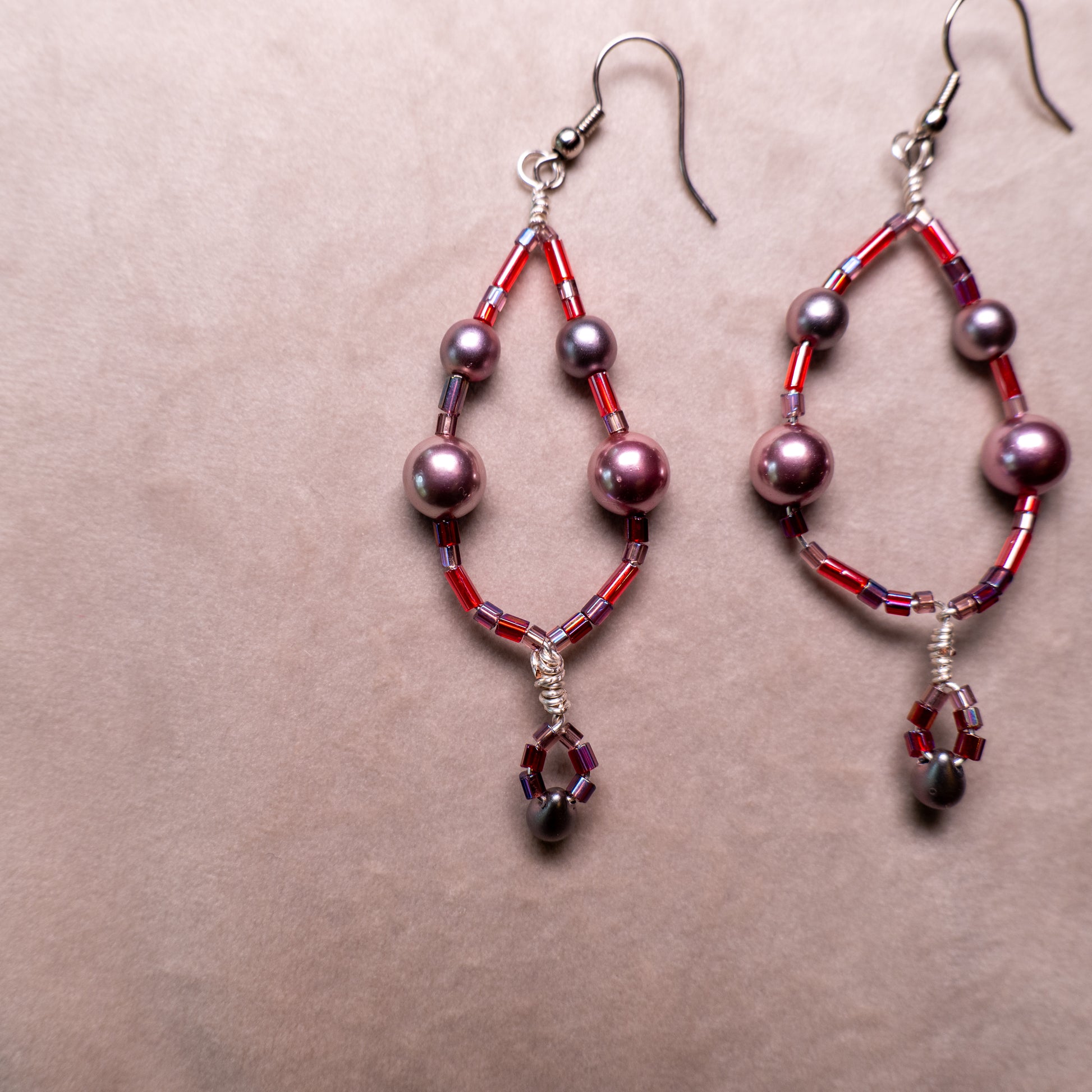 Deze oorbellen hebben een druppelvorm, waarin glanzende paarse en roze kralen speels samenkomen. De subtiele glans en de druppelvorm zorgen voor een sierlijk effect dat zowel casual als feestelijk gedragen kan worden Het ontwerp is licht en luchtig, waardoor de oorbellen fijn bewegen en een vleugje kleur toevoegen aan elke outfit.