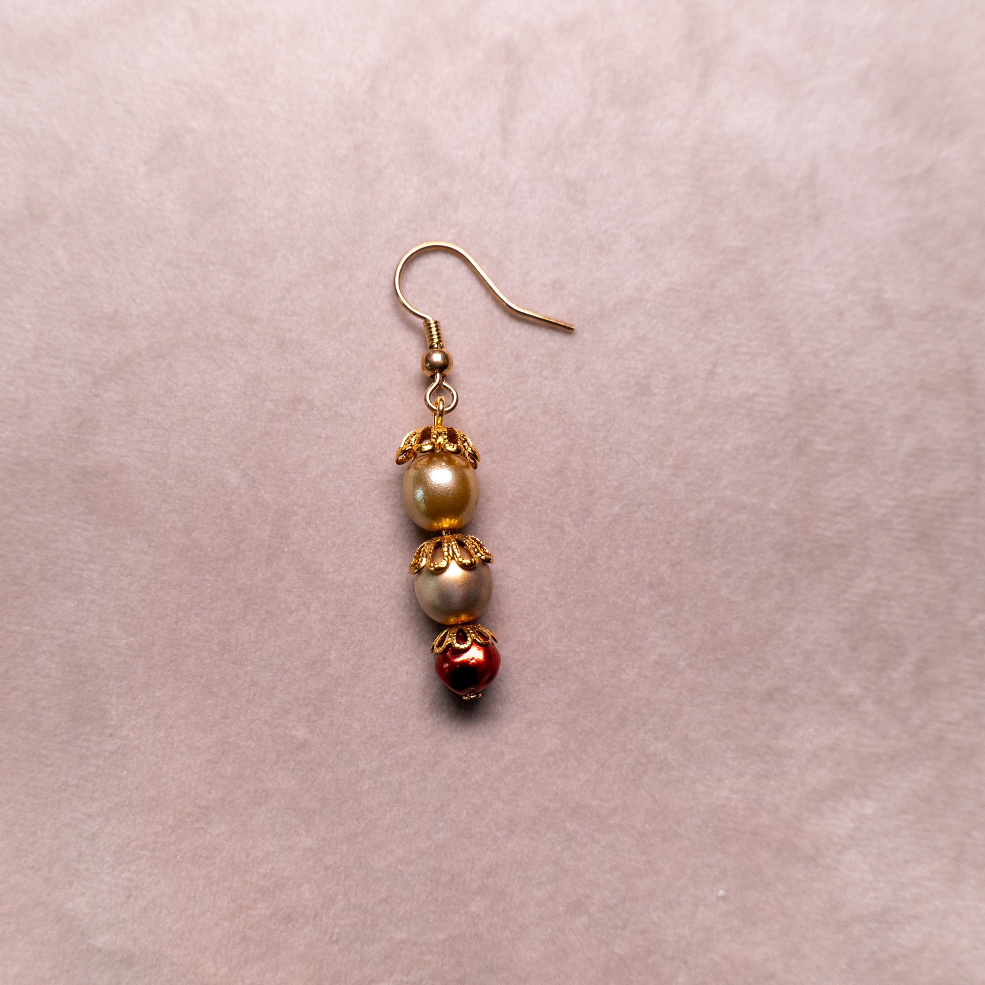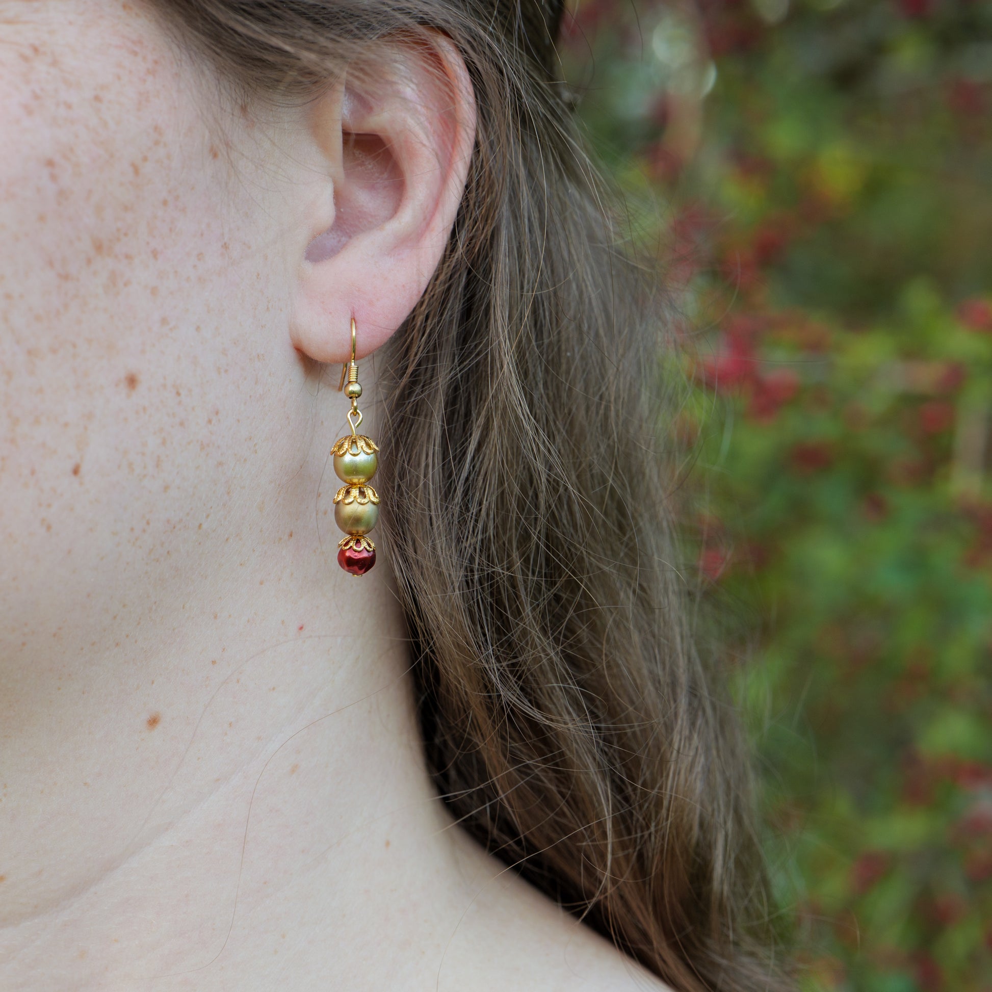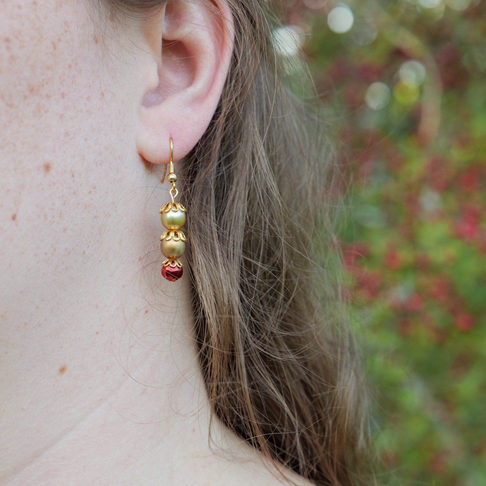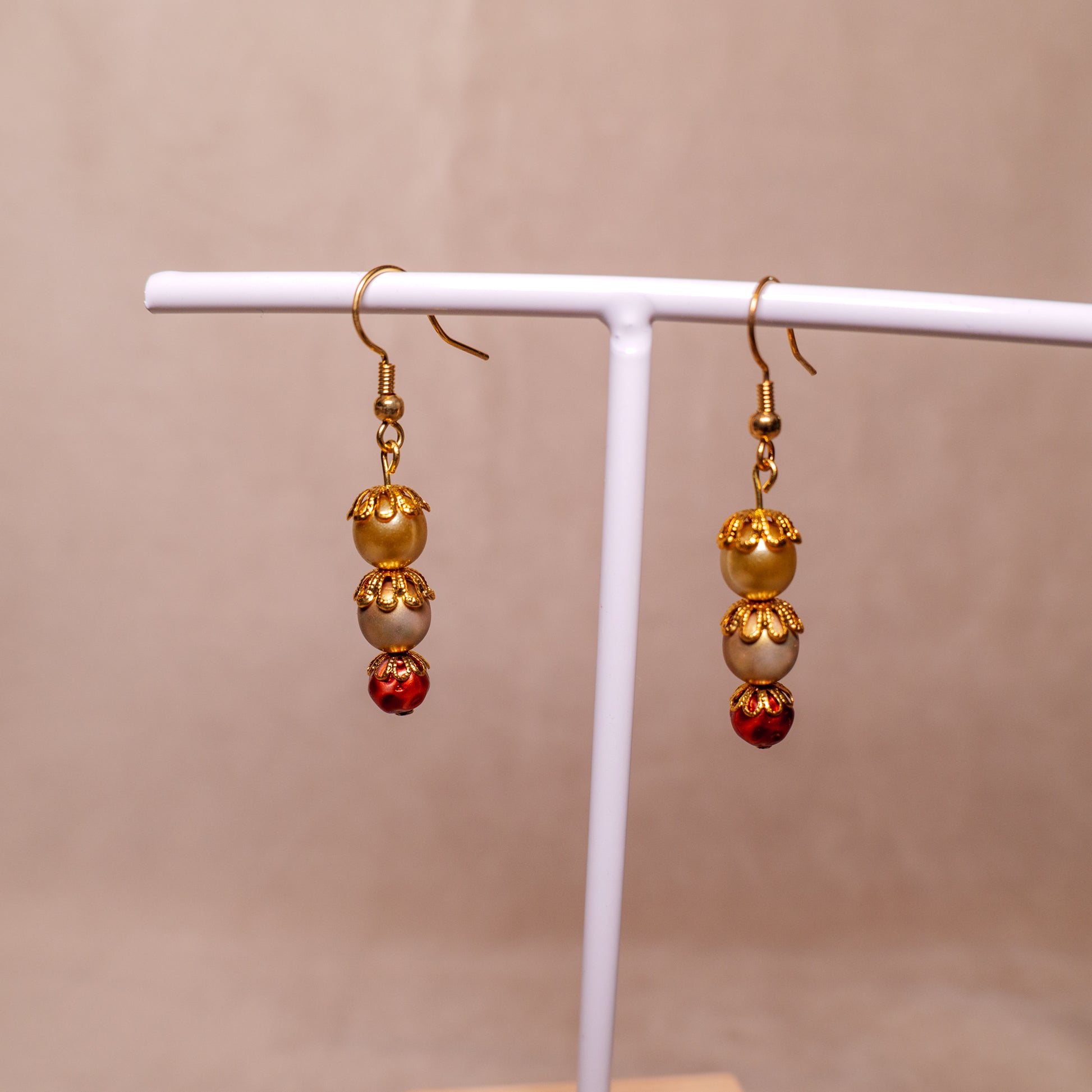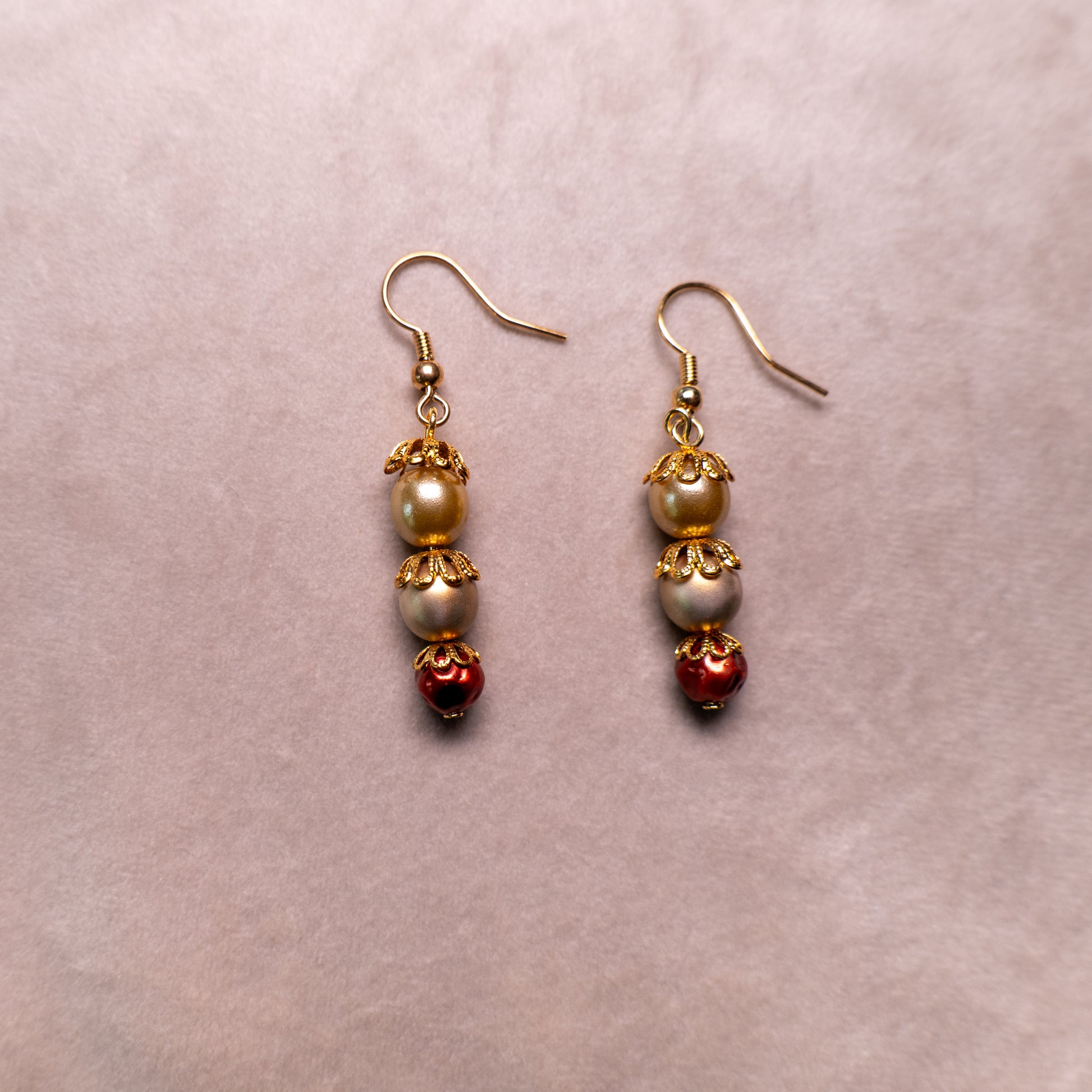 Oorbellen met bronskleurige en granaatappelrode kralen